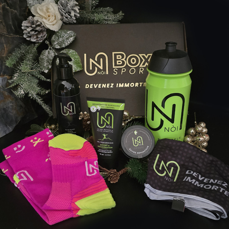 Nouveau design coffret Noël exclusif avec 6 produits essentiels : récupération express, prévention des blessures, détente musculaire, confort technique et hydratation optimale.